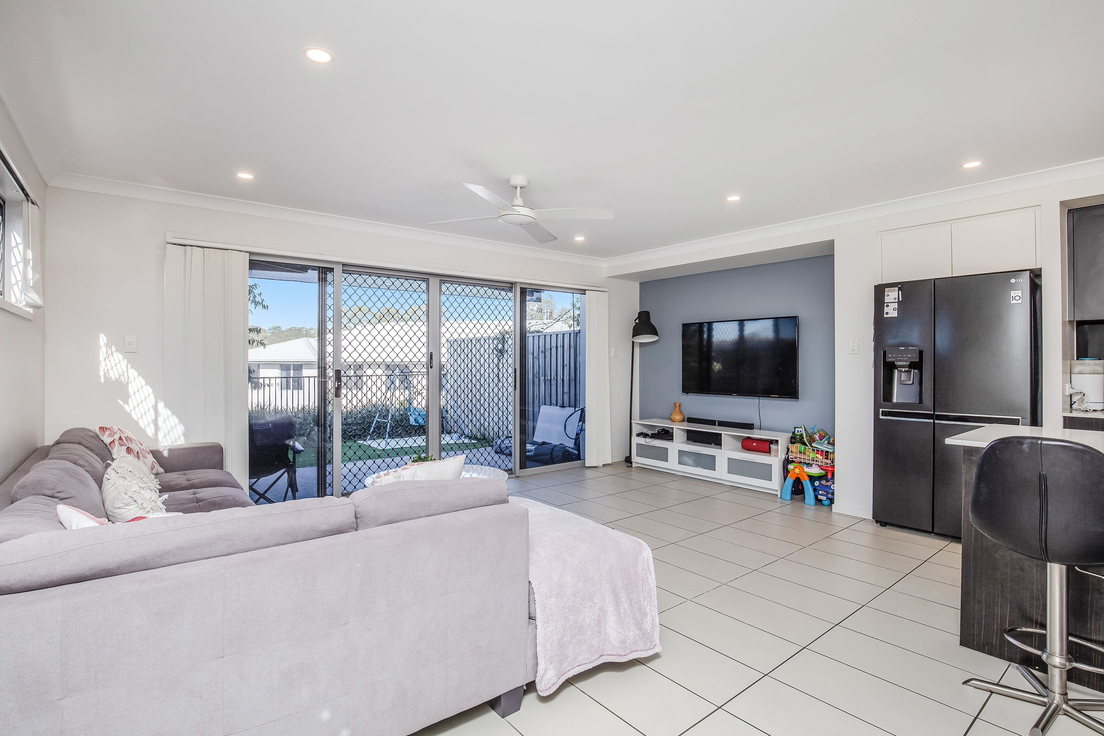 The kitchen is superbly designed and great for families with plenty of storage and bench space, 600mm oven and cooktop. The kitchen has an open plan living and dining area which is tiled and features a neutral colour scheme, with lots of space for a dining table and chairs, couches and TV entertainment.