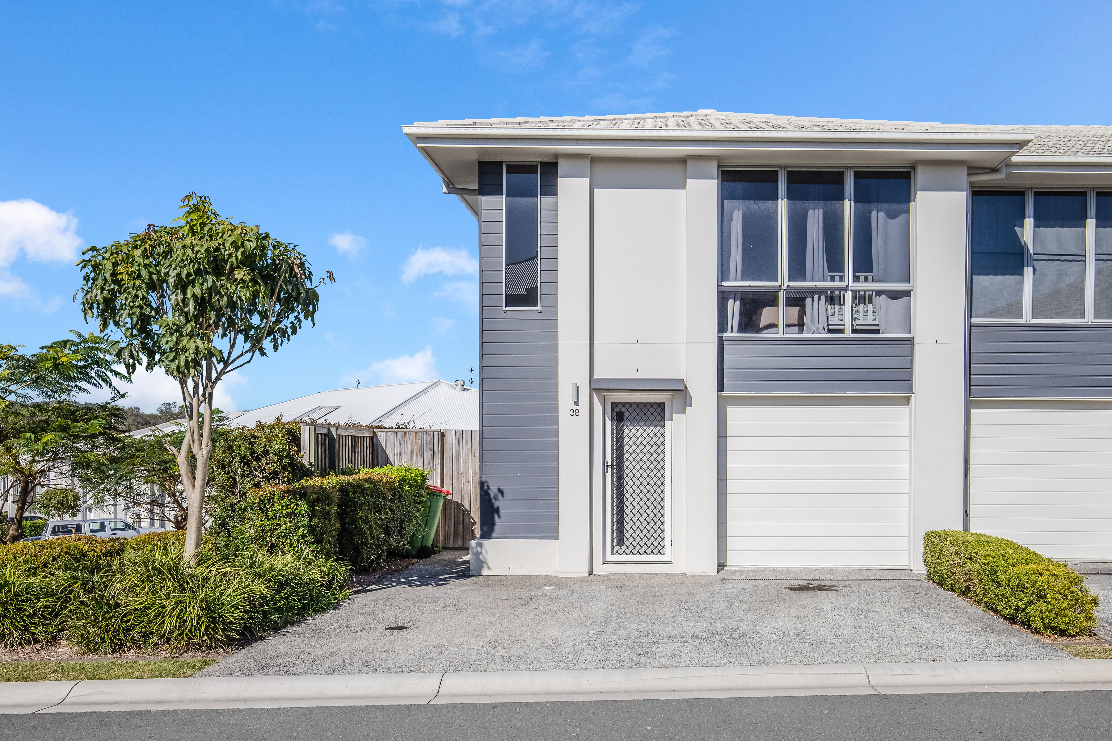 The facades on the Warwick Terraces are cleverly designed and appealing. This end townhouse provides extra space with side gate access and a double driveway for an additional car, plus has its own secure 1 car garage. The home is a short stroll across the road to the resort style pool and BBQ facilities and open green park.
